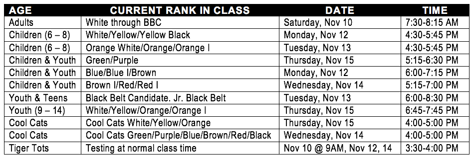 November Belt Exams